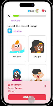 We conducted user testing asking participants to learn Spanish. Gathering feedback through multiple rounds, we iteratively improved the wireframes to achieve a seamless user experience.